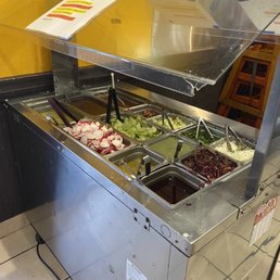 Good vibes inside. Ppl clearly like each other and like to be here. A little on the pricer side but they give a good amount of protein per serving. No pico at the taco bar tho.